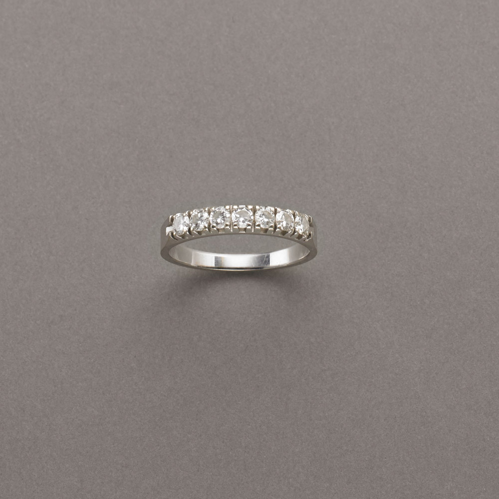 Fedina in oro bianco con sette diamanti rotondi taglio a brillante, g.3, misura: 15/55 Diamond and white gold eternity ring