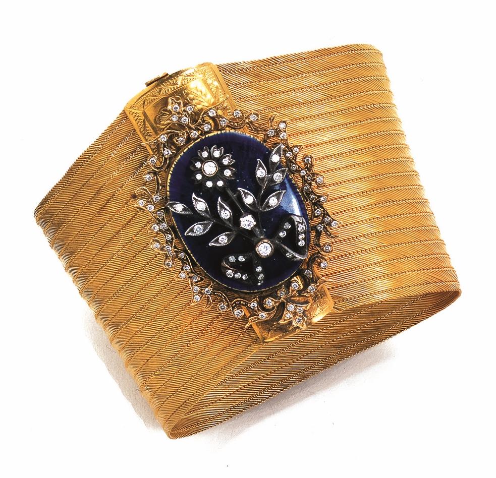 BRACCIALE IN ORO GIALLO, ARGENTO, DIAMANTI E SMALTO