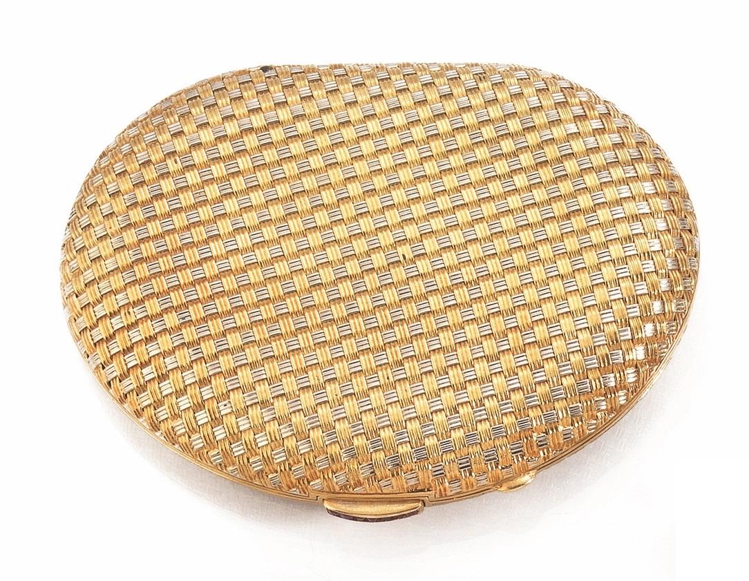 SCATOLA PORTACIPRIA IN ORO BIANCO, ORO GIALLO E RUBINIdi forma sagomata...