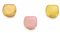 ciascuna modellata come una borsetta in oro giallo lavorato a guilloche con smalti rispettivamente giallo, rosa e cipria, g 102 lordi complessivi
