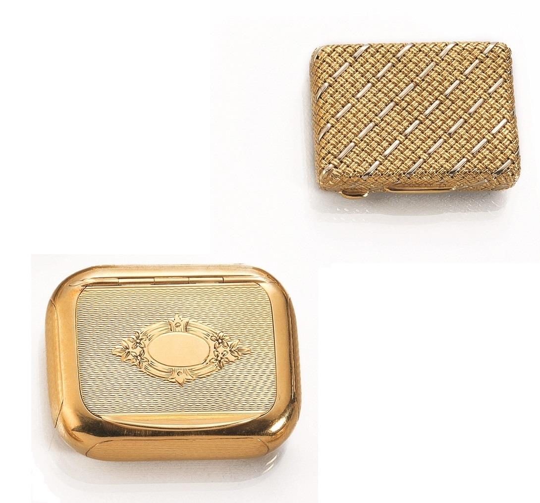 DUE SCATOLINE IN ORO GIALLO E ORO BIANCOrispettivamente di forma rettangolare...