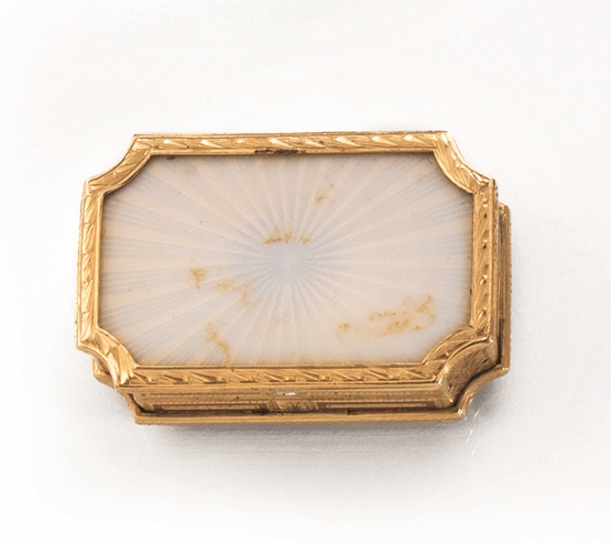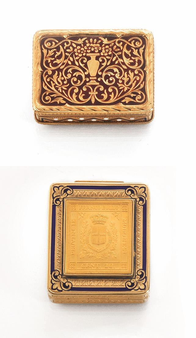 TRE SCATOLINE IN ORO GIALLO E SMALTIrispettivamente di forma rettangolare...