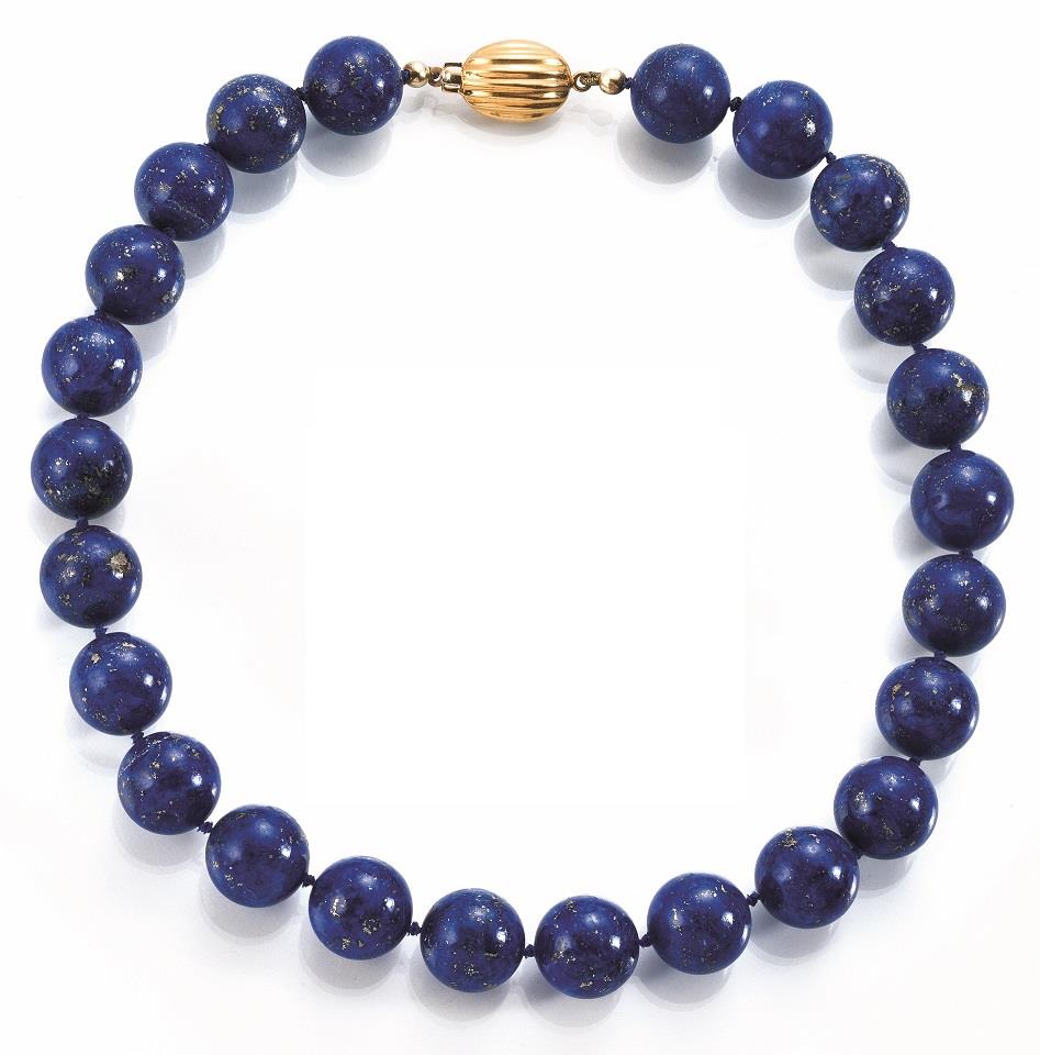 realizzata ad una fila di sfere in lapislazzuli diam. mm 18 con fermatura ovale rigata, punzone 750, g 222