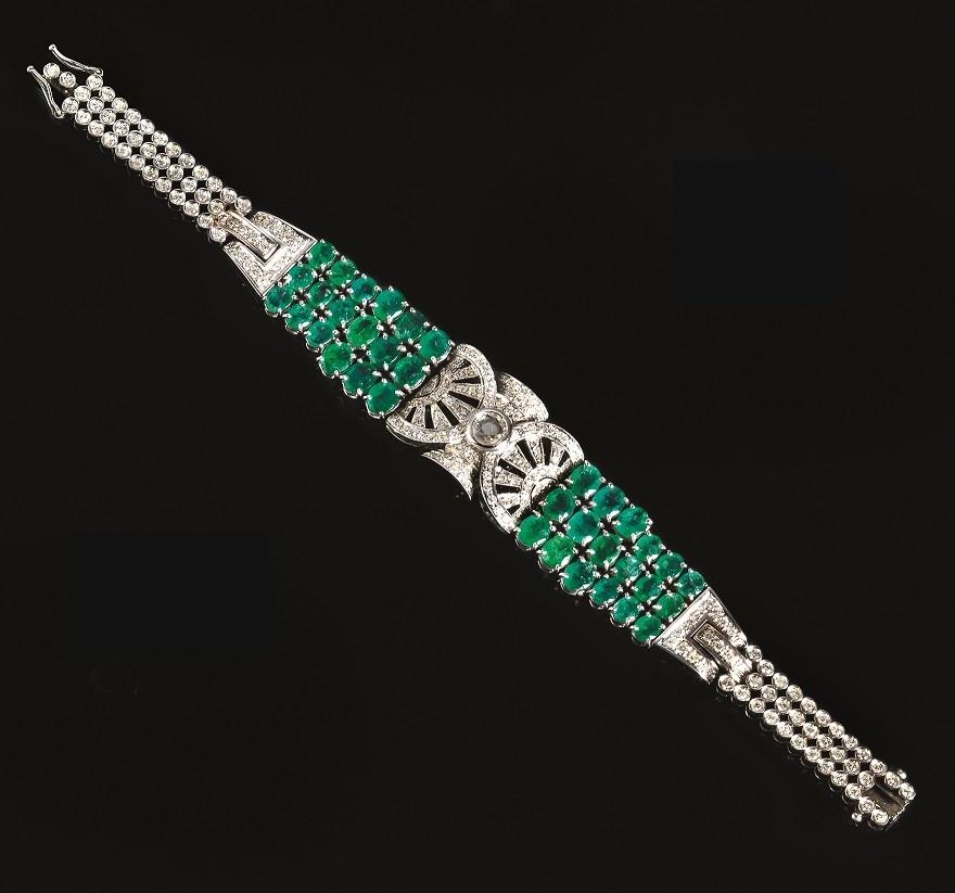 BRACCIALE IN ORO BIANCO 18 K E 14 K, SMERALDI E DIAMANTI
