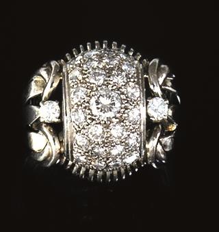 ANELLO IN ORO BIANCO E DIAMANTIdi forma bombata con sfera in pave' e gambo...