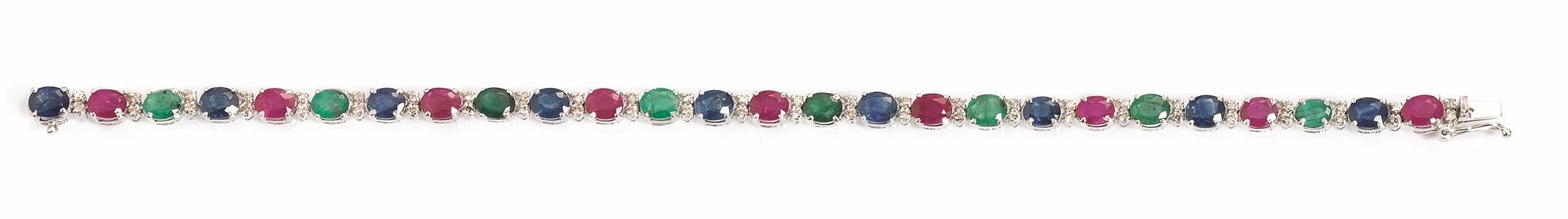 BRACCIALE IN ORO BIANCO, RUBINI, ZAFFIRI, SMERALDI E DIAMANTI