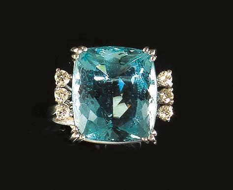 ANELLO IN ORO BIANCO, ACQUAMARINA E DIAMANTI