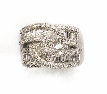 ANELLO IN ORO BIANCO E DIAMANTIrealizzato a fascia alta con nastri di...