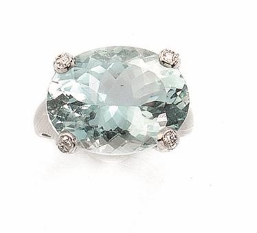 Lot 137 | ANELLO IN ORO BIANCO, ACQUAMARINA E DIAMANTIal centro un' acquamarina ovale...