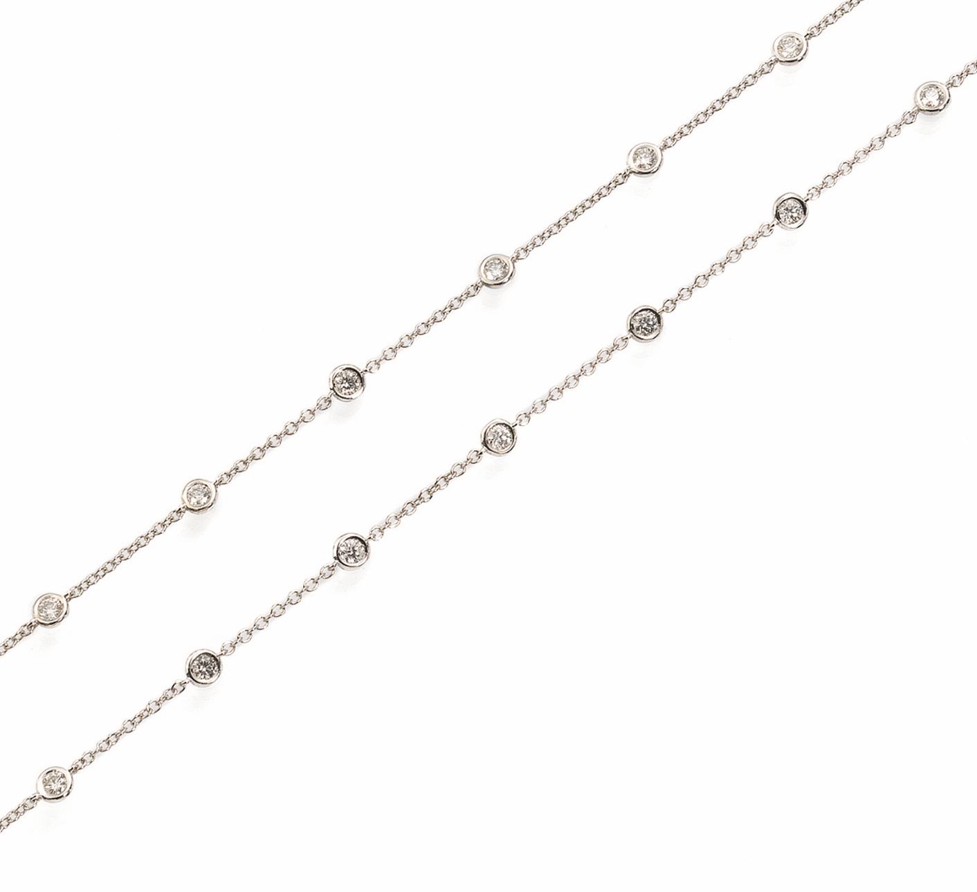 CATENINA IN ORO BIANCO E DIAMANTIrealizzata ad una fila di brillanti con...