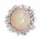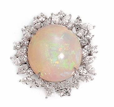 al centro un opale bianco cabochon montato entro corolla in brillanti e marquise, punzone 750, g 9