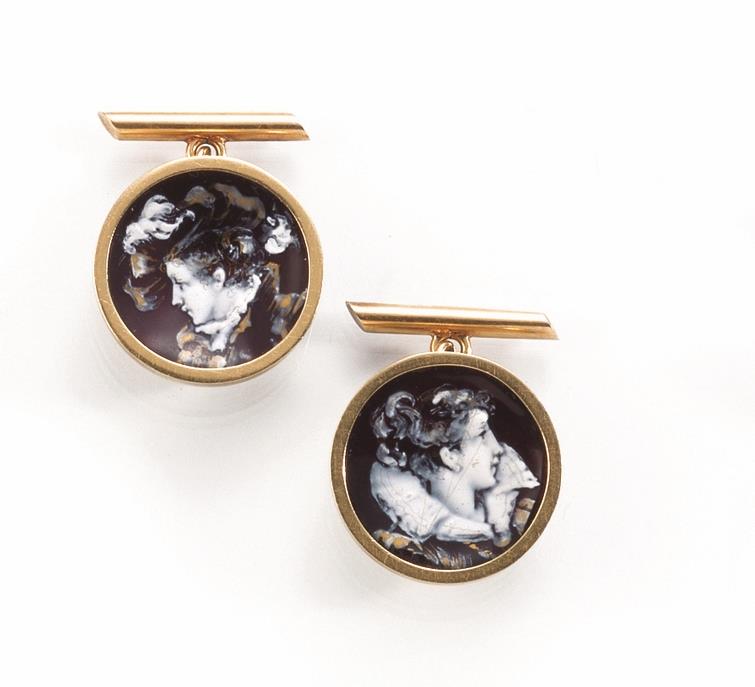 PAIO DI GEMELLI IN ORO GIALLO E SMALTI