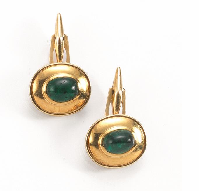 Lot 165 | PAIO DI GEMELLI IN ORO GIALLO E SMERALDIciascuno di forma ovale con smeraldo...