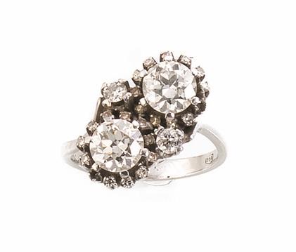 ANELLO IN ORO BIANCO E DIAMANTIcon montatura contrarie con finale due...