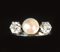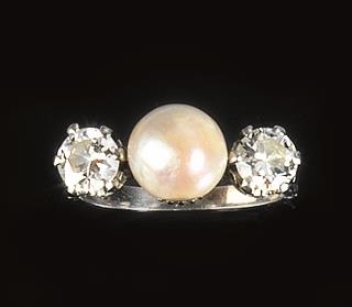 al centro una perla diam. mm 8 affiancata da due brillanti, g 5