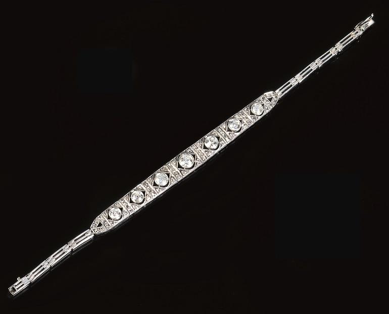 BRACCIALE, ANNI '20, IN PLATINO, ORO BIANCO E DIAMANTI