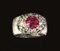 DUE ANELLI IN ORO BIANCO, RUBINO SINTETICO, ZAFFIRI SINTETICI E PASTE VITREE