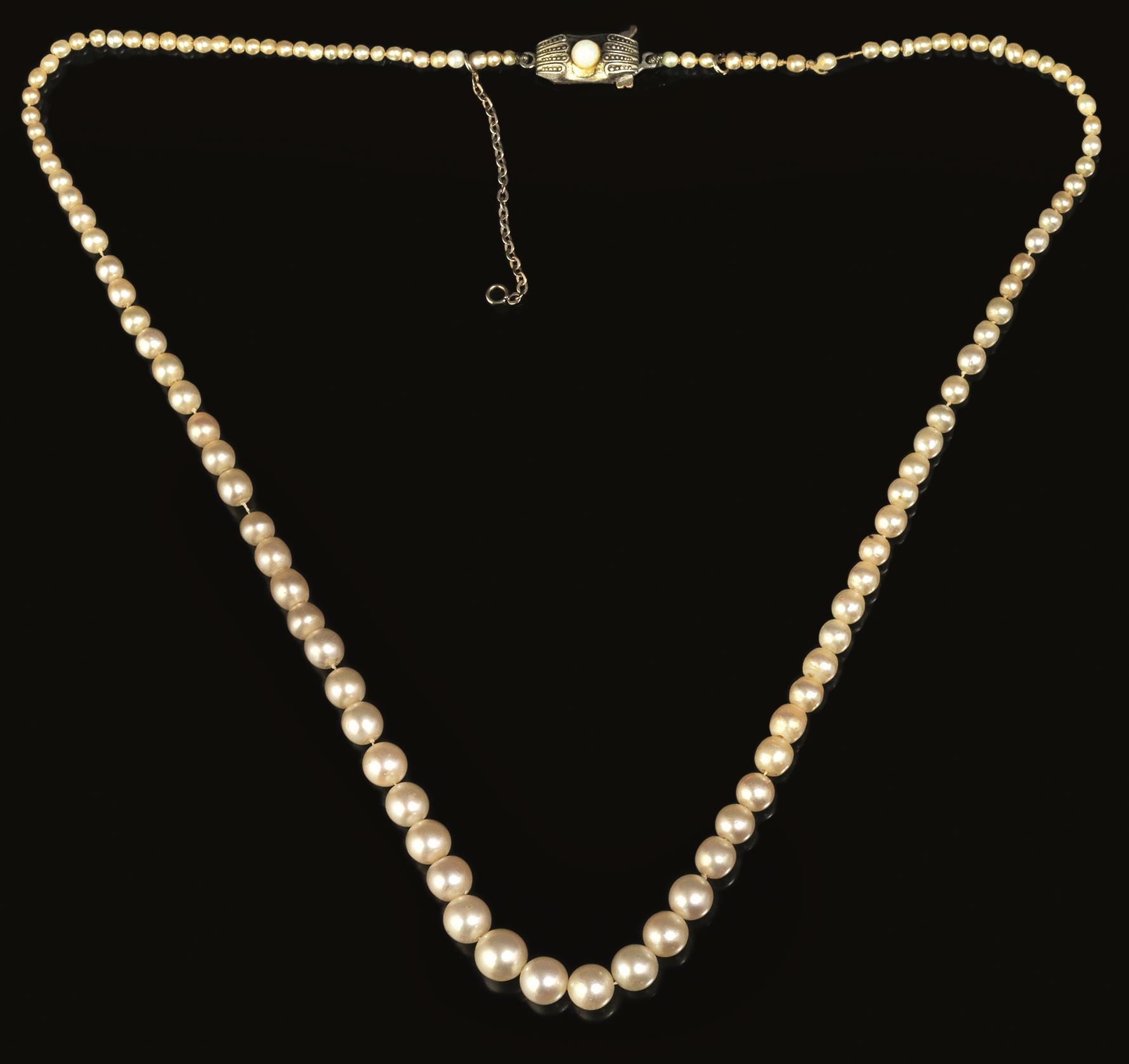 realizzata ad una fila di perle in parte naturali e in parte coltivate diam. da mm 1.50 a mm 7.50, corredata di short report CISGEM n. 350, datato 16/03/2015