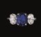 al centro uno zaffiro ovale di 4 ct circa affiancato da due brillanti ovali per complessivi ct 1.50 circa, punzone Pt, g 9, corredato di certificato CISGEM n 504 datato 02/04/2015 Milano
