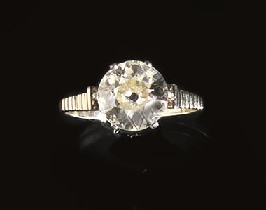con brillante taglio vecchio di 2 ct circa, entro montatura a griffe ondulata, g 3