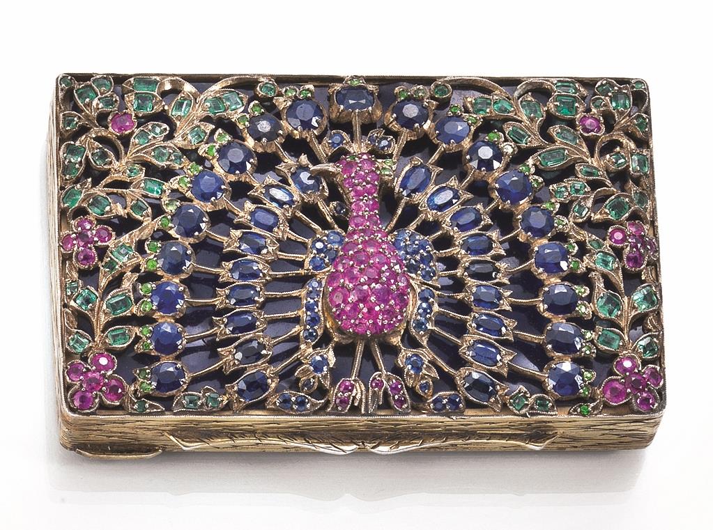 SCATOLA IN ARGENTO DORATO, RUBINI, ZAFFIRI, SMERALDI E PERIDOTI