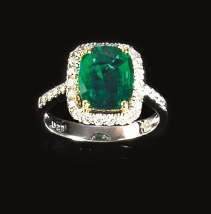 ANELLO IN ORO BIANCO, ORO GIALLO, SMERALDO E DIAMANTI