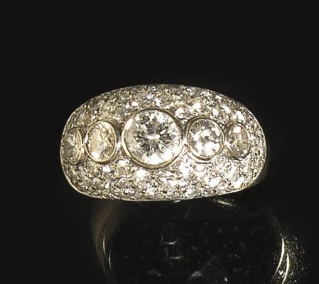 ANELLO IN ORO BIANCO E DIAMANTIa fascia bombata di brillanti ad una linea di...