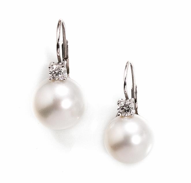 ciascuno realizzato con una perla australiana diam. mm 15 sormontata da un brillante, punzone 750, g 13
