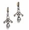 ciascuno realizzato con un elemento sagomato a volute impreziosito da rose di diamante, gocce e brillanti rotondi, finale in perla diam. mm 12.5, punzone 750, g 16