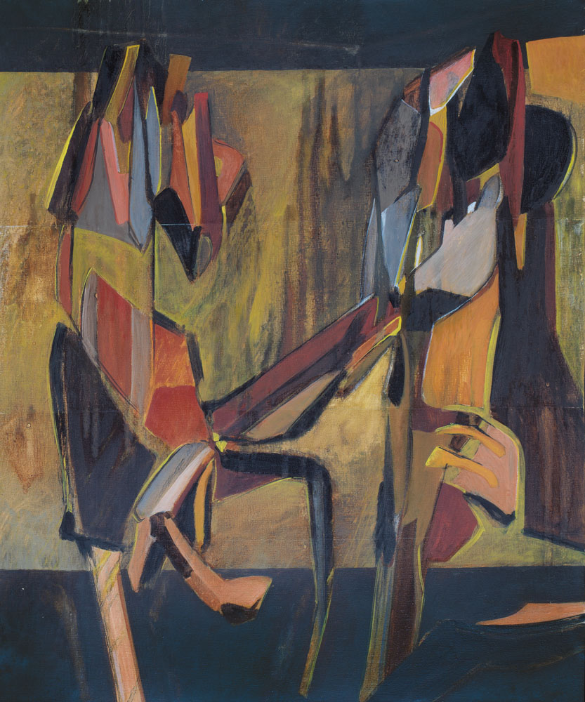 MARIO ROSSELLO Savona 08/12/1927 - Milano 2001 Dialogo, 1964 olio su tela cm. 60x50, firma, titolo e anno al retro.