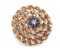 di forma circolare con piccole foglie in oro giallo lavorato a cordonetto e brillanti montati in oro bianco, al centro una corolla in zaffiri, punzone 18 K, g 18