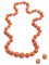 la collana realizzata ad una fila di sfere poste in gradazione da mm 9.5 a mm 18.5 in corallo salmone; ciascun orecchino di forma ovale con corallo cabochon entro castone in oro giallo, punzone 750, g 151 complessivi