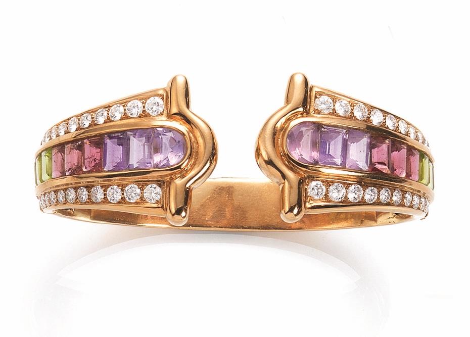 Lot 372 | BRACCIALE IN ORO GIALLO, AMETISTE, TORMALINE, PERIDOTI E DIAMANTIrealizzato a...