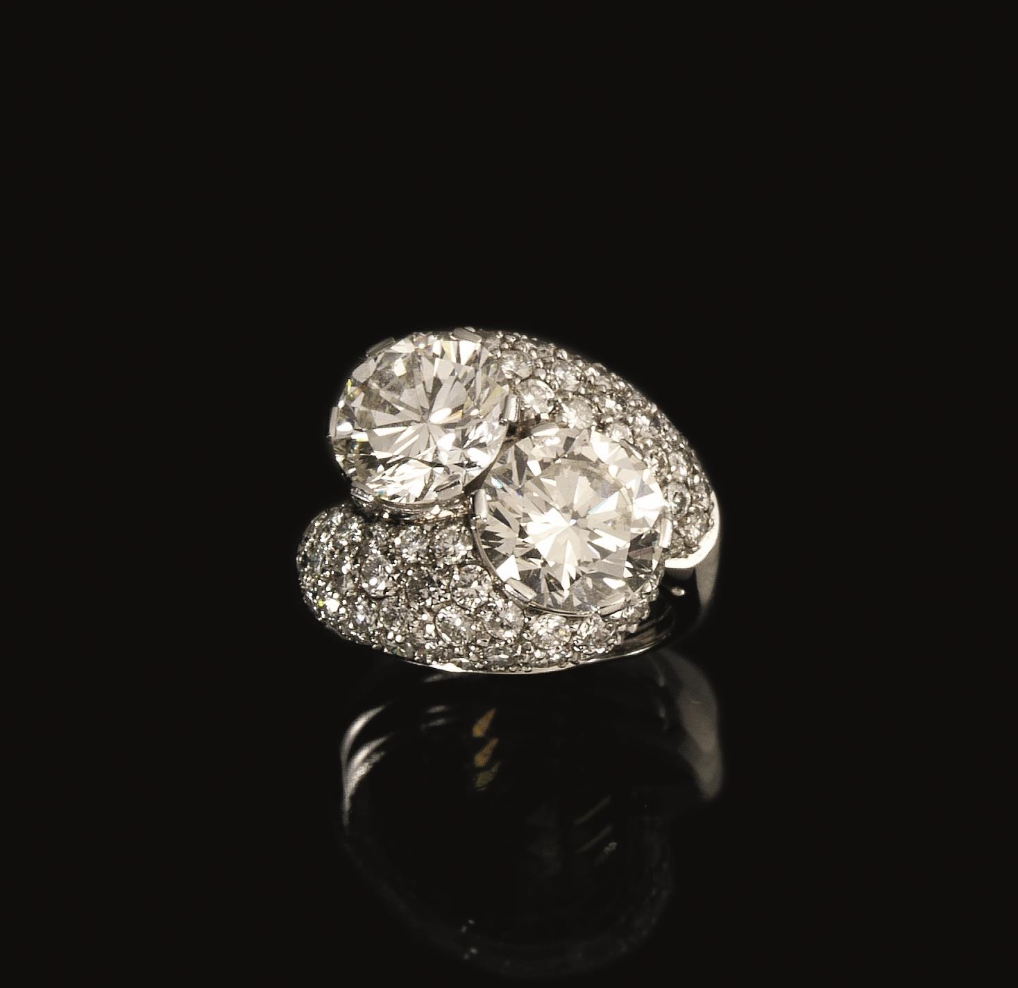 Lot 385 | ANELLO IN ORO BIANCO, PLATINO E DIAMANTI con montatura contrariè al centro...