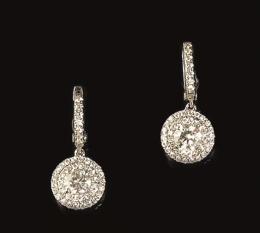 PAIO DI ORECCHINI PENDENTI IN ORO BIANCO E DIAMANTIciascuno realizzato con...
