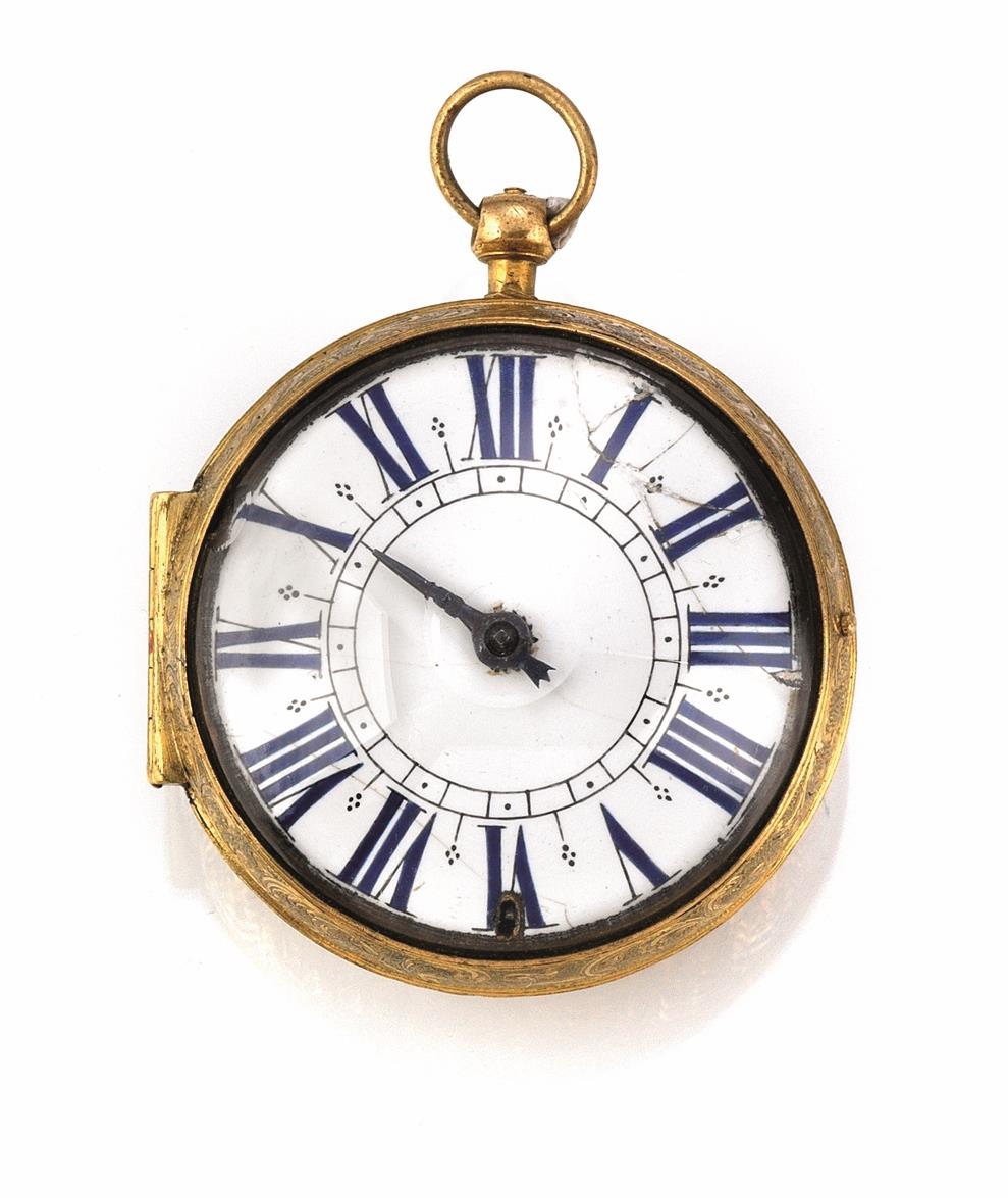 OROLOGIO DA TASCA, GAUDRON PARIS, 1690 CIRCA, IN OTTONE DORATOCassa finemente...