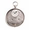 Cassa in argento liscio, carrure godronata. Quadrante argento inciso a paesaggio con viandante, nella parte superiore piccolo quadrante orario in smalto bianco con numeri arabi, apertura per la chiavetta tra ore 1 e 2, nella parte inferiore tre finestrelle quadrate con numeri da 1 a 6 riportati su un disco azionabile tramite una levetta ad ore 6. Movimento con scappamento a verga, carica e rimessa delle ore a chiavetta. Diam. mm 61