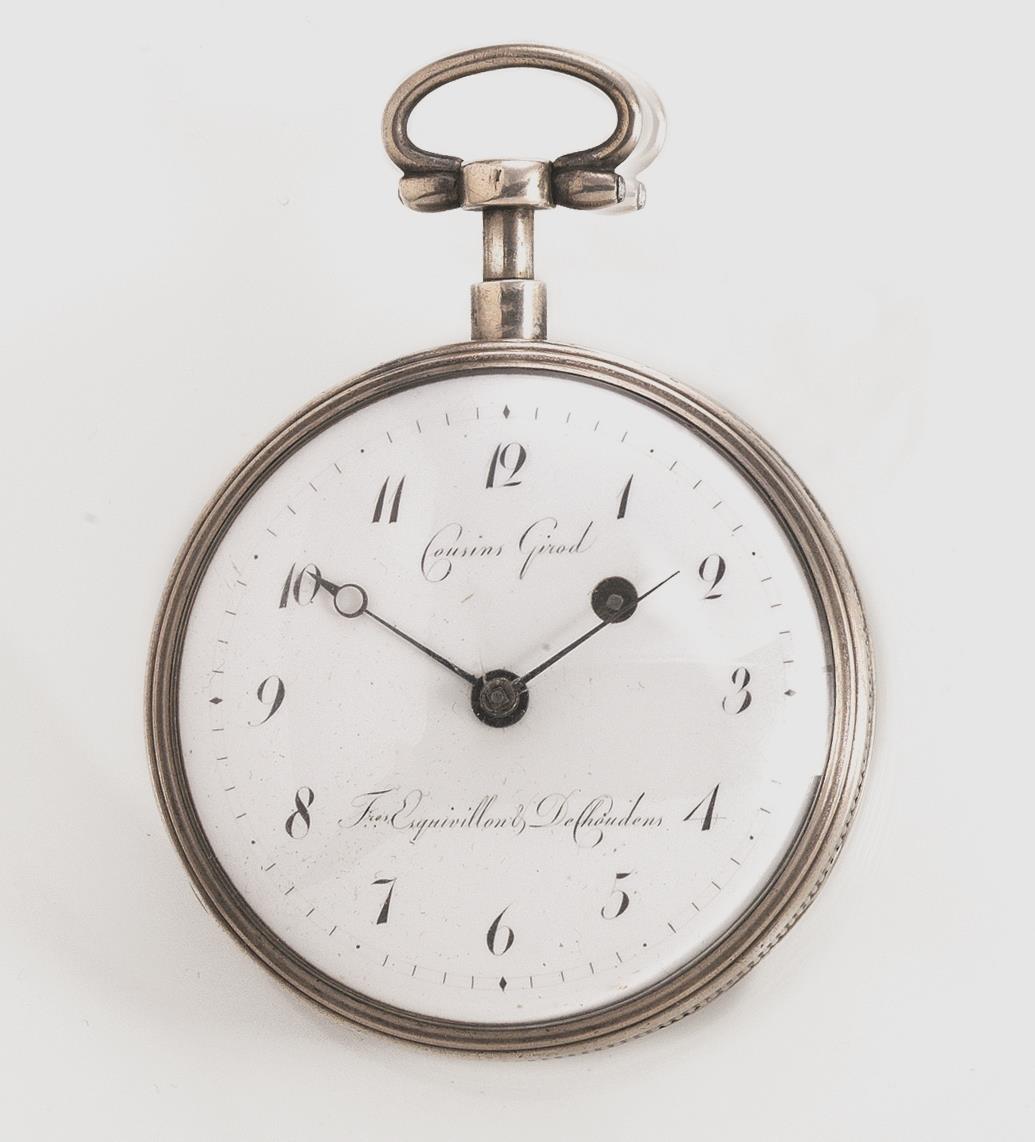 OROLOGIO DA TASCA CON RIPETIZIONE ORE E QUARTI, COUSINS GIROD, FRERES ESQUIVILLON & DE CHOUDENS, N. 82591, 1800 CIRCA, IN ARGENTO