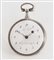 Cassa in argento liscio con carrure godronata. Quadrante firmato con numeri arabi, apertura per la chiavetta tra ore 1 e 2. Movimento firmato e numerato con scappamento a verga, carica e rimessa delle ore a chiavetta, suoneria ore e quarti. Diam. mm 55