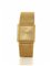 Cassa carrè in due corpi in oro lucido e satinato, fonello chiuso da quattro viti, corona di carica sul fondello. Quadrante champagne satinato con indici puntiformi, lancette Dauphine. Movimento firmato al quarzo. Bracciale integrato alla cassa con chiusura a scomparsa Piaget in oro giallo 18 kt. Dim. mm 23x23