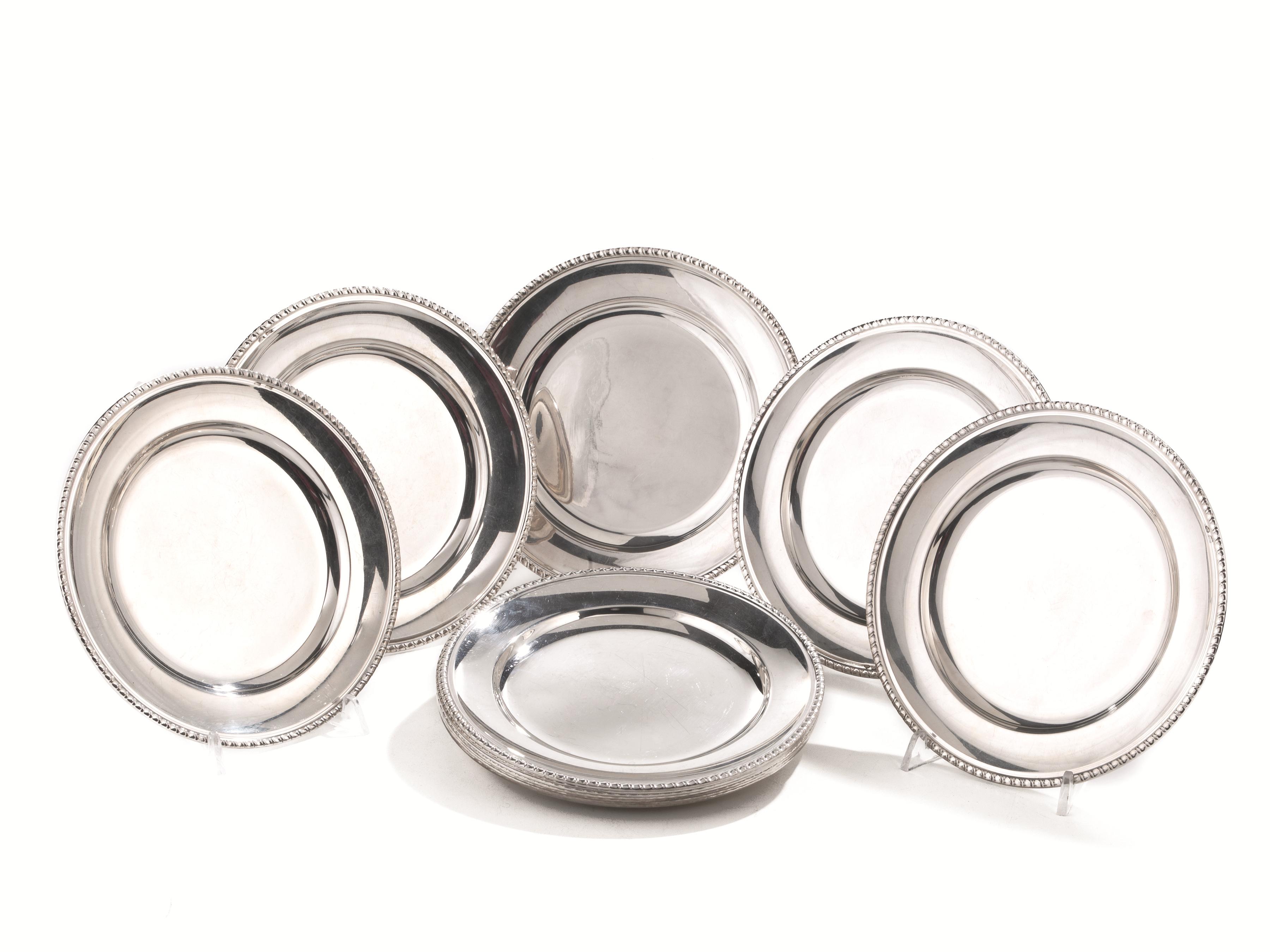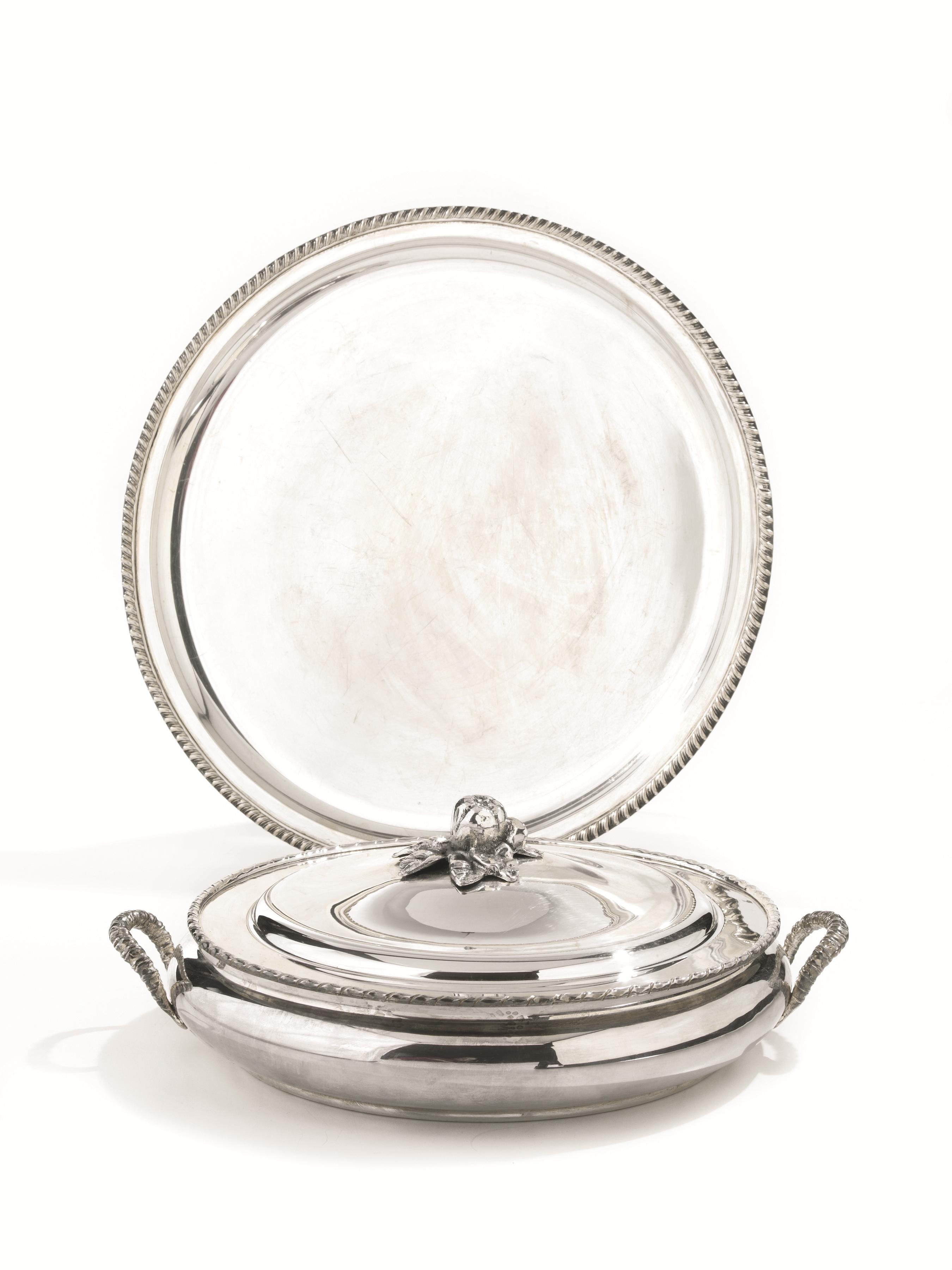 Lot 25 | GRANDE VASSOIO CIRCOLARE E DODICI PIATTINI, SECOLO XXin argento con bordo a...