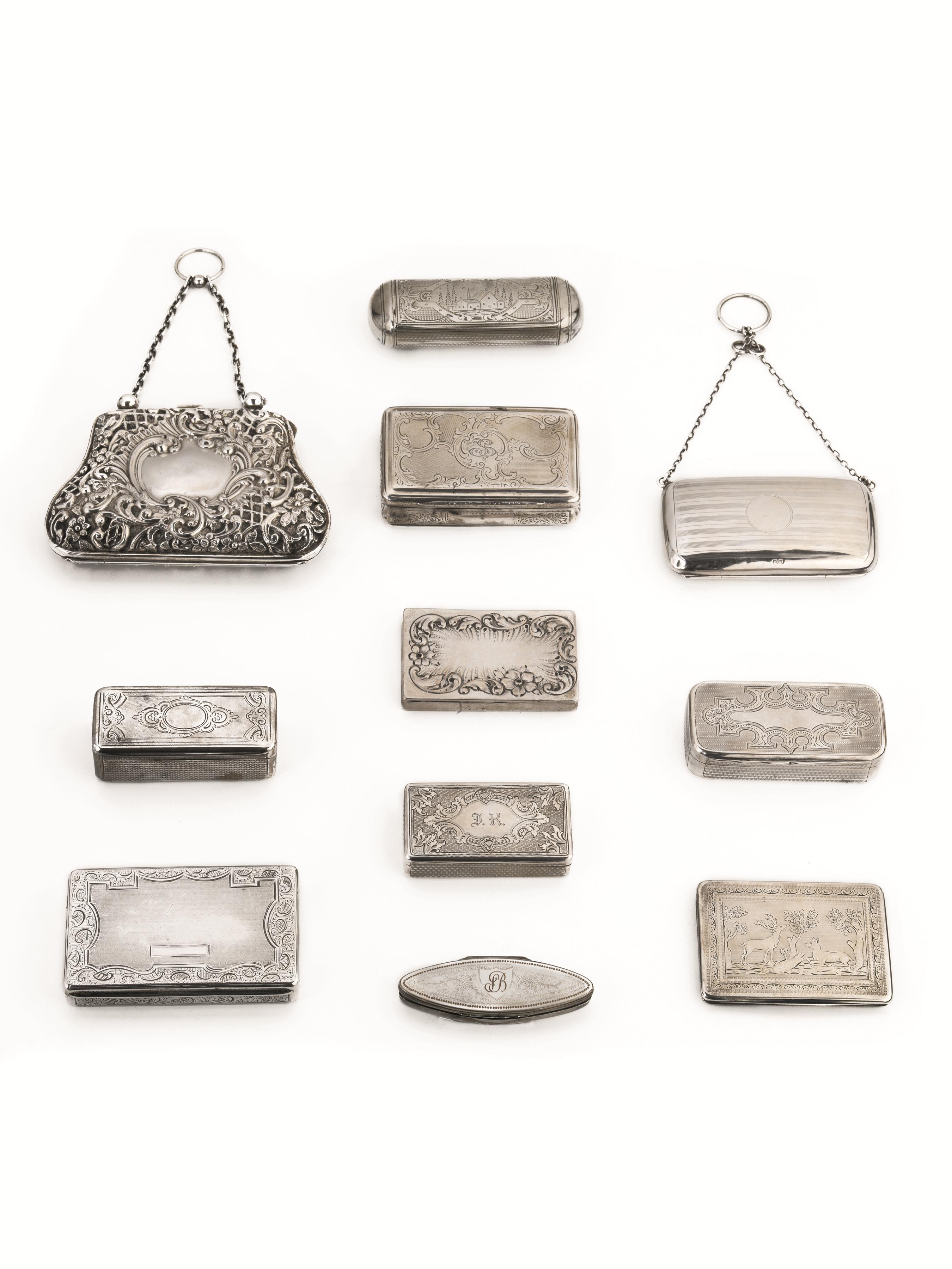 UNDICI SCATOLINE, INGHILTERRA E GERMANIA, SECOLO XIXin argento, cesellato e...