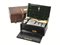 composto di dieci tra scatoline, boccette porta inchiostro e flaconi in vetro tagliato con tappi in argento decorato a guilloché e volute, due spazzole e un pettine entro cofanetto in cuoio con alloggio porta carta e pianetto per scrittura. Custodito entro scatola in pelle il cui coperchio presenta monogramma C.S. ed etichetta in carta Collezione Sartorio (13)
