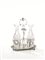 in argento, base rettangolare con bordo traforato poggiante su quattro piedini a sfera, fusto modellato come una lira con marscheroni, presa geometrica terminante con teste di aquile, completa di ampolle, alt. cm 29,5, g 690