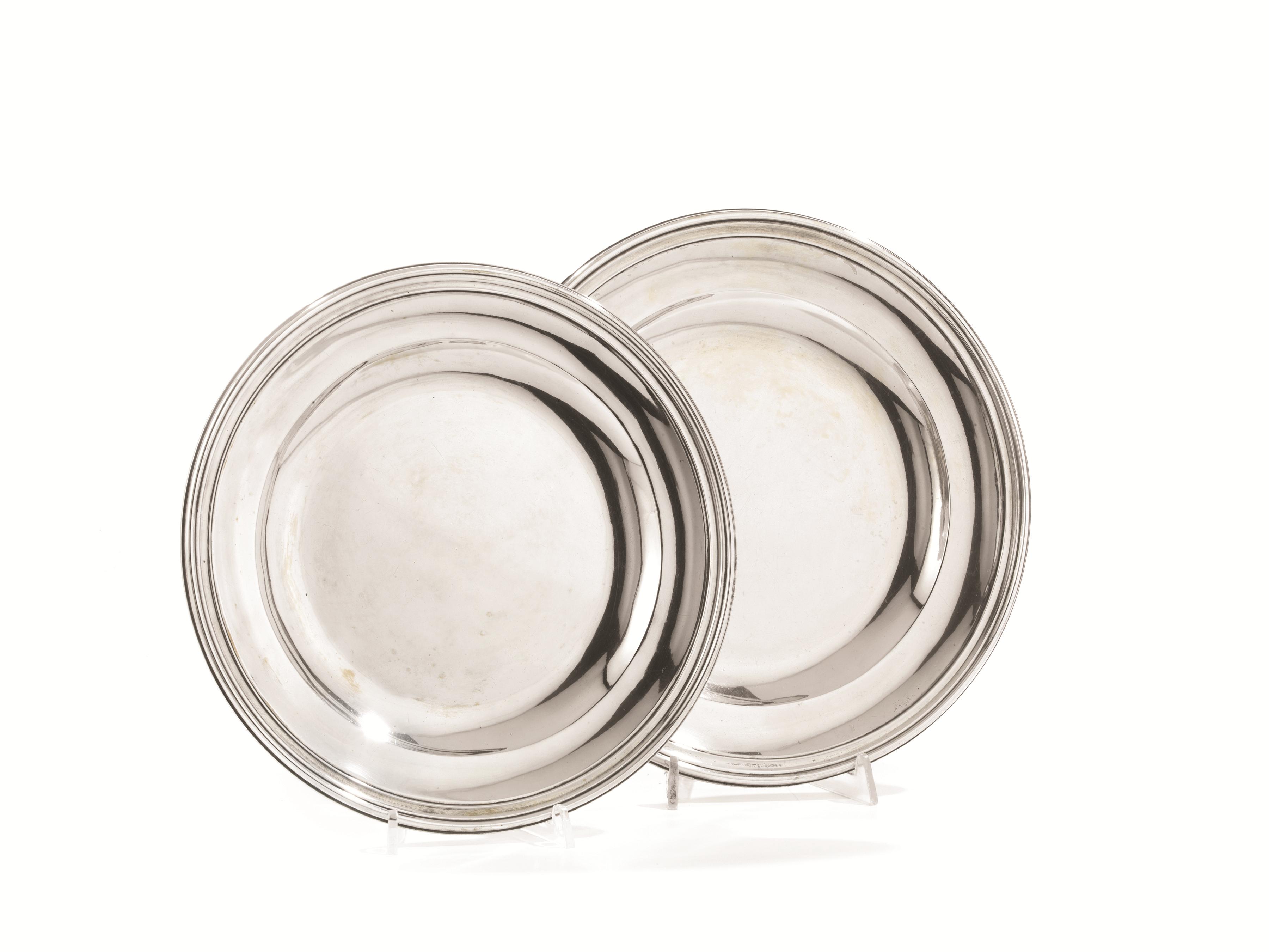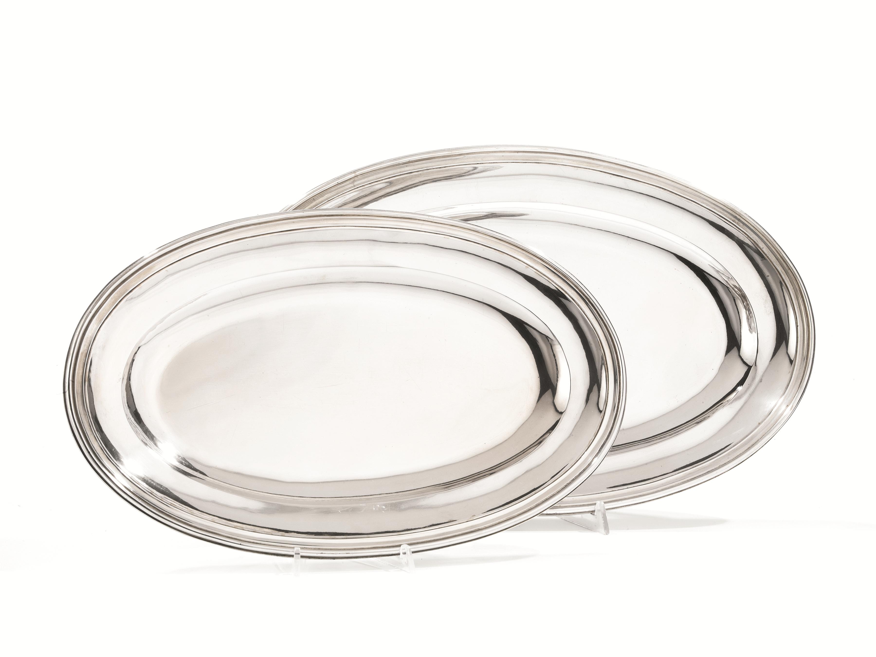 DUE VASSOI CIRCOLARI E DUE VASSOI OVALI, FIRENZE, META' SECOLO XIX, ARGENTIERE GUADAGNI