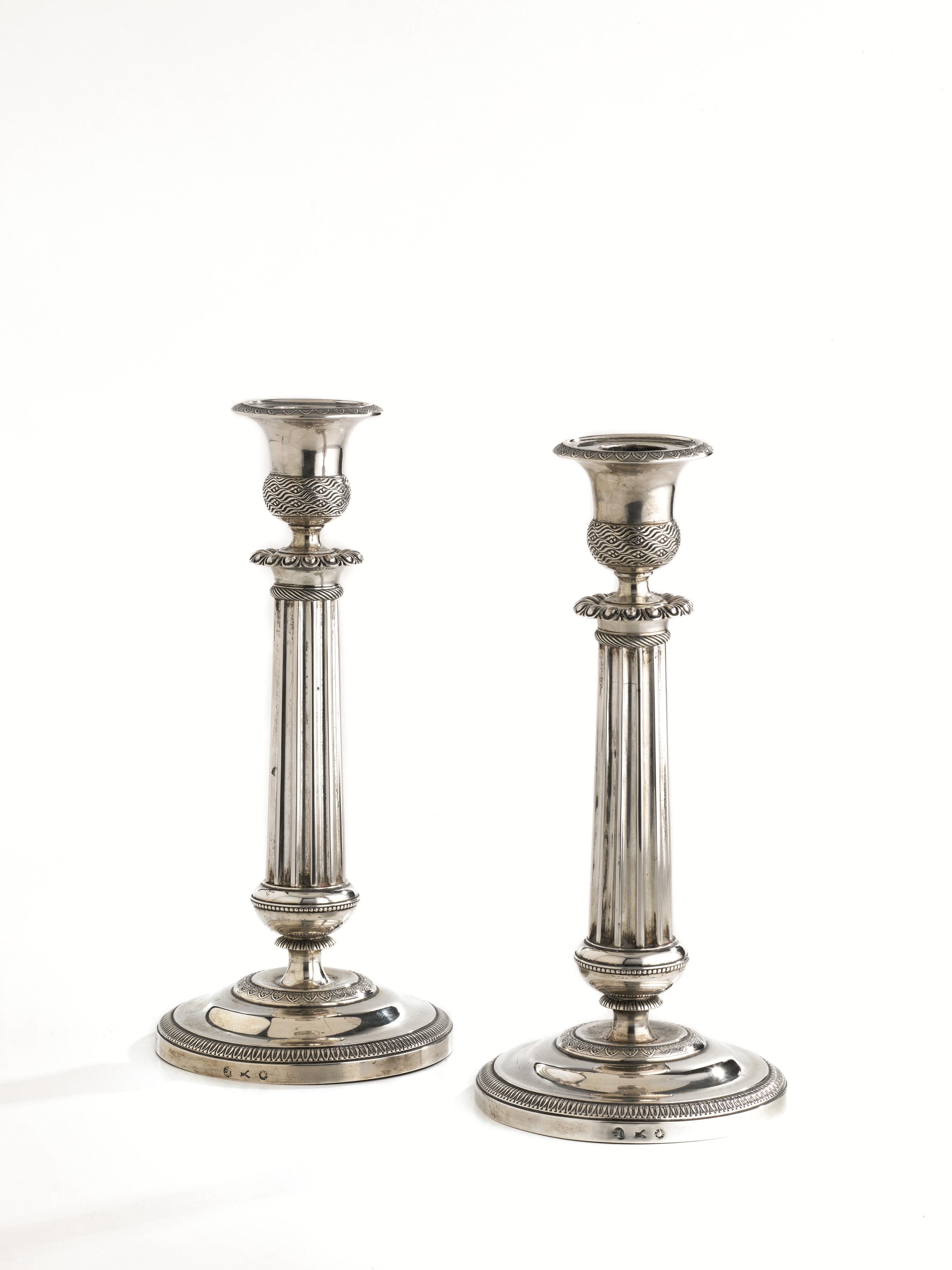 Lot 105 | COPPIA DI CANDELIERI, MILANO, PRIMA META' SECOLO XIX, ARGENTIERE LUCA...