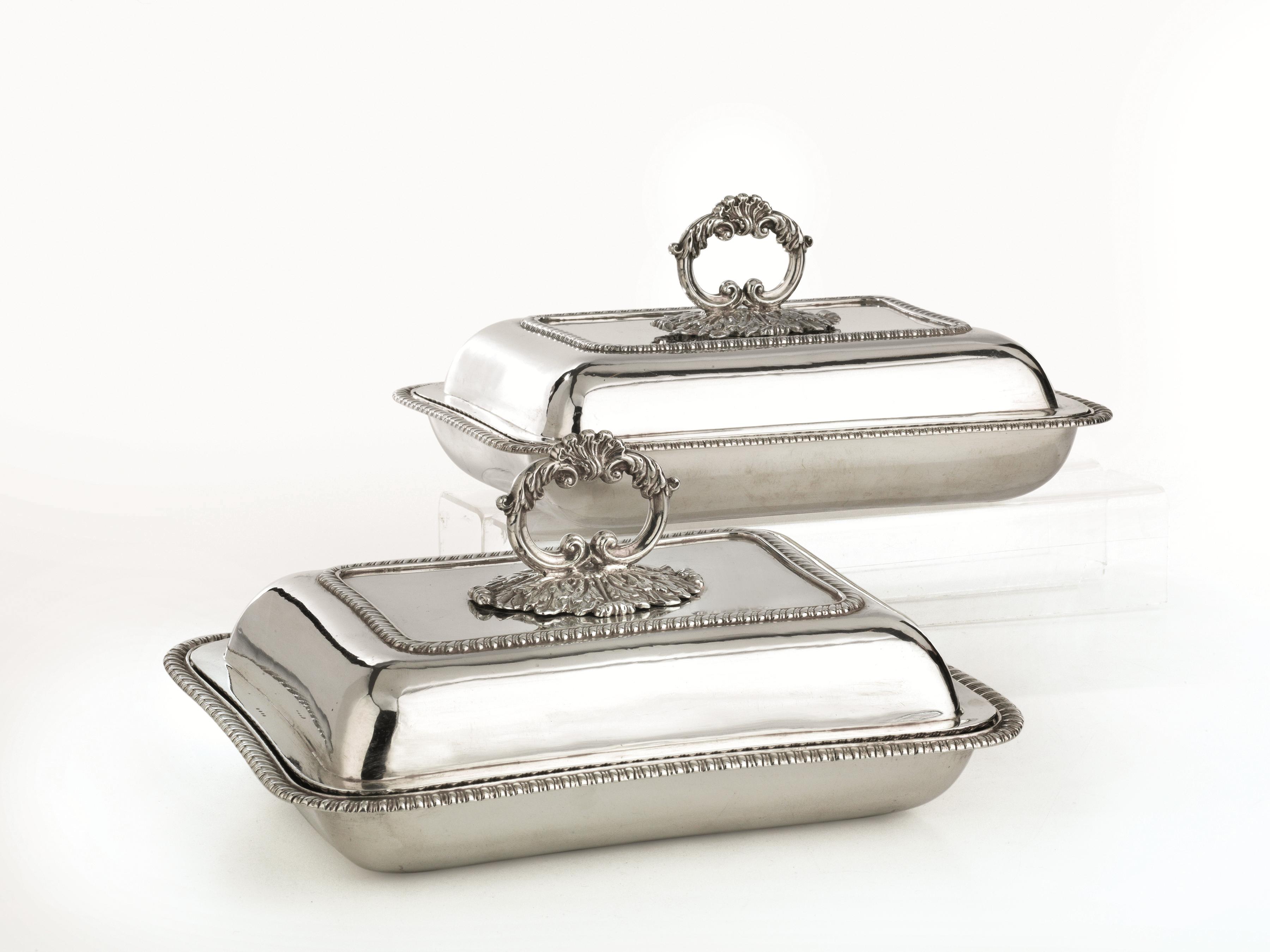 COPPIA DI LEGUMIERE, LONDRA, 1825, ARGENTIERE J. ANGELL di forma rettangolare...