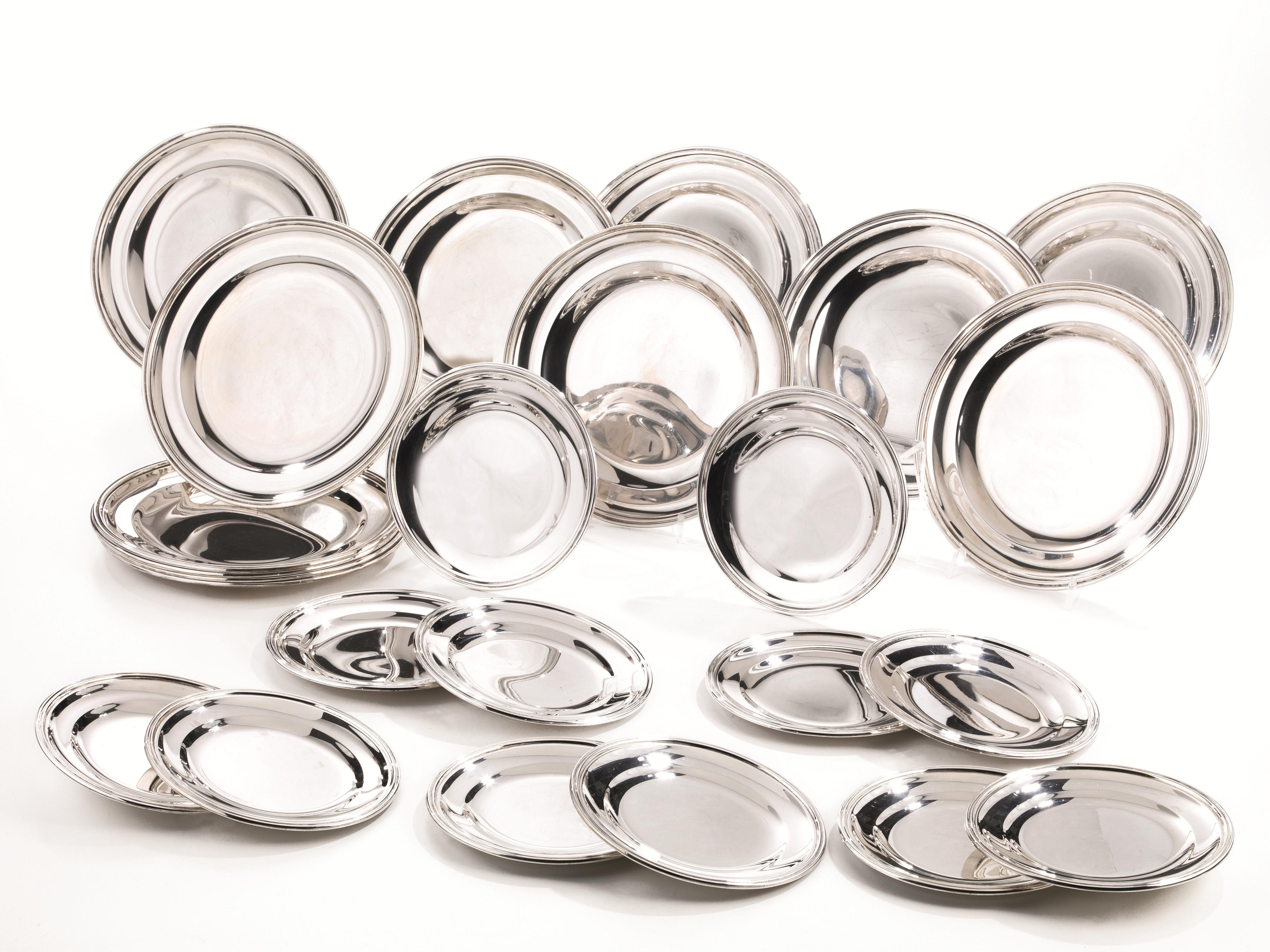 DODICI PIATTINI DA PANE E DODICI PIATTINI DA FRUTTA, BULGARI, 1973in argento...