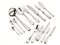 in argento, manici con finale decorato da volute, composto di ottantuno pezzi, complessivi g 3990 circa (81)