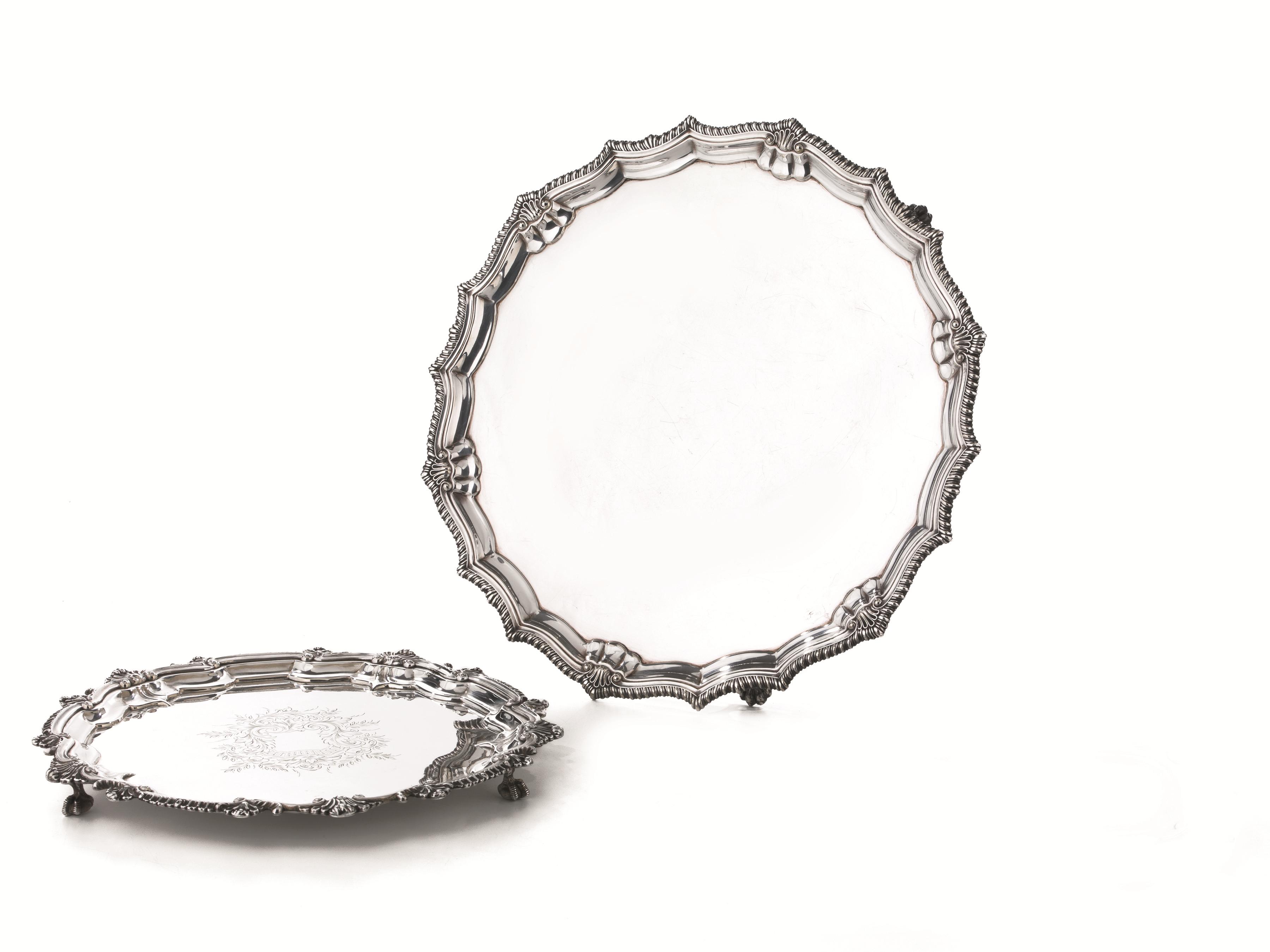 Lot 201 | DUE SALVER, INGHILTERRA, SECOLO XXin metallo argentato con bordi sagomati,...